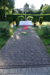 Unterwegs traf man auf mit Fahnen geschmückte Wohnhäuser und auf gelegentliche Hausaltäre mit Heiligenfiguren, Birkengrün und Blumensträuße.