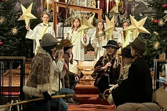 Am Krippenspiel haben Kinder von der zweiten Klasse bis zur siebten Klasse mitgewirkt. Die Fürbitten wurden u.a. von zwei Achtklässlern vorgetragen.