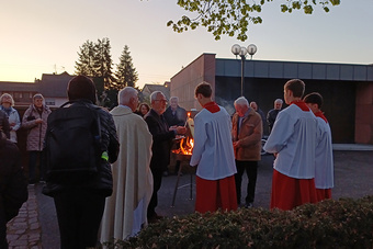 Osternacht: Sie wurde ebenfalls von dem Musikverein Neunkirchen musikalisch umrahmt. Im Anschluss an den Gottesdienst fand ein gemeinsames Frühstück im Gemeinschaftshaus statt, das von der Singgruppe Neunkirchen organisiert wurde.